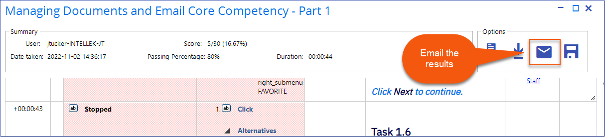 Create Administrators, Results Users, and Create App Users now have the option to email course/assessment results directly from the Results file to a desired email recipient. 1.Open the Results file and click the Email the results button in the top right corner of the Results file.
